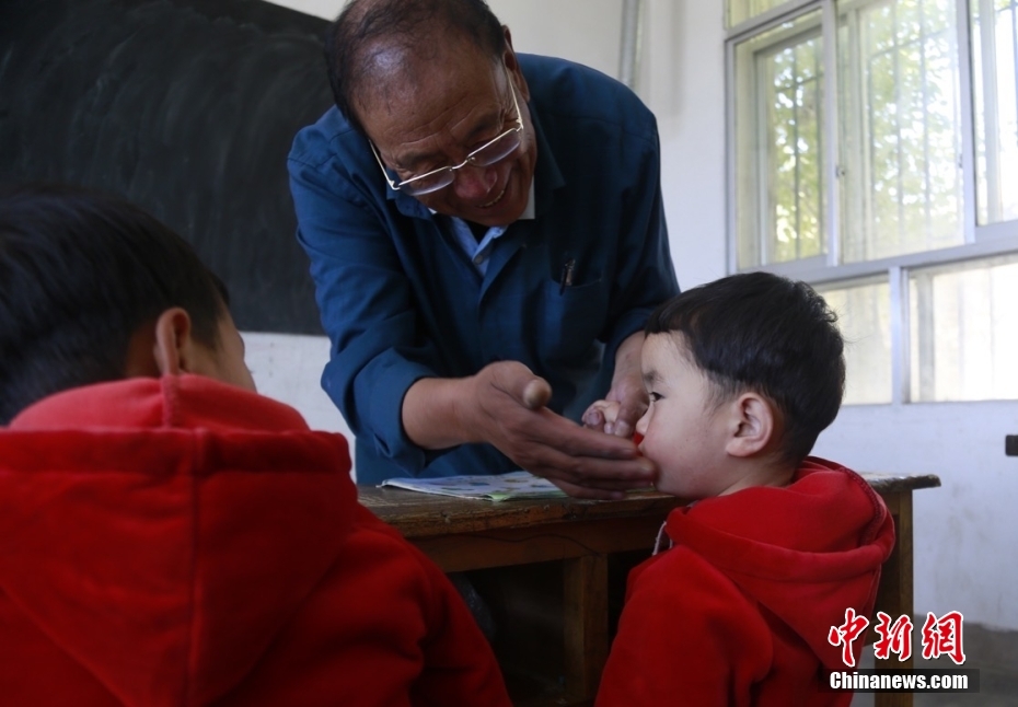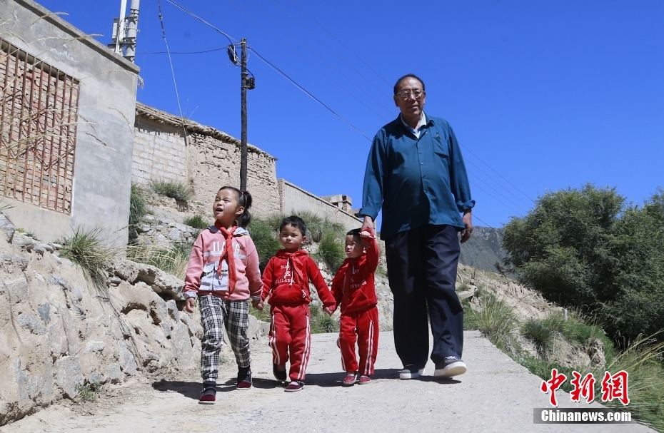 30年前他剛來學(xué)校時(shí)不會(huì)講當(dāng)?shù)氐娜隼逭Z(yǔ)言,村民也聽不懂他說的藏語(yǔ)??鄬W(xué)兩年后,他便能用一口純正的撒拉語(yǔ)和大家溝通。中新社記者 馬銘言 攝