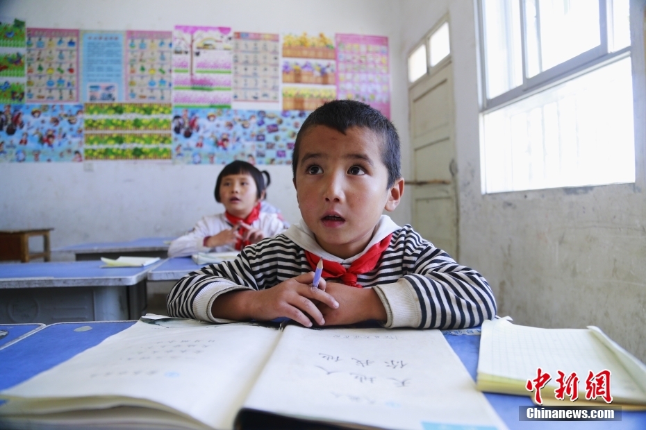 在青海省海東市循化撒拉族自治縣白莊鎮(zhèn)來塘村來塘學(xué)校教室內(nèi),學(xué)生正在上課。中新社記者 馬銘言 攝
