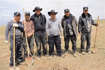可可西里保護(hù)區(qū)工作人員在巡山途中。右三為布周??煽晌骼锕芾硖幑﹫D