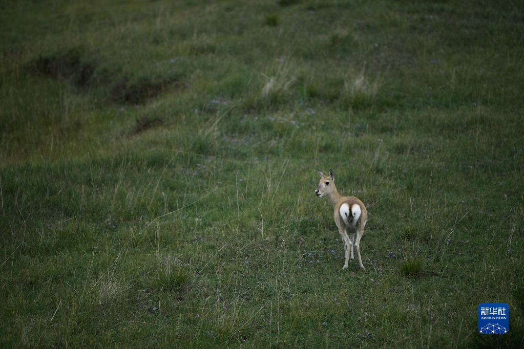 9月15日,一只普氏原羚在青海湖岸邊的牧場內活動。新華社記者 張龍 攝