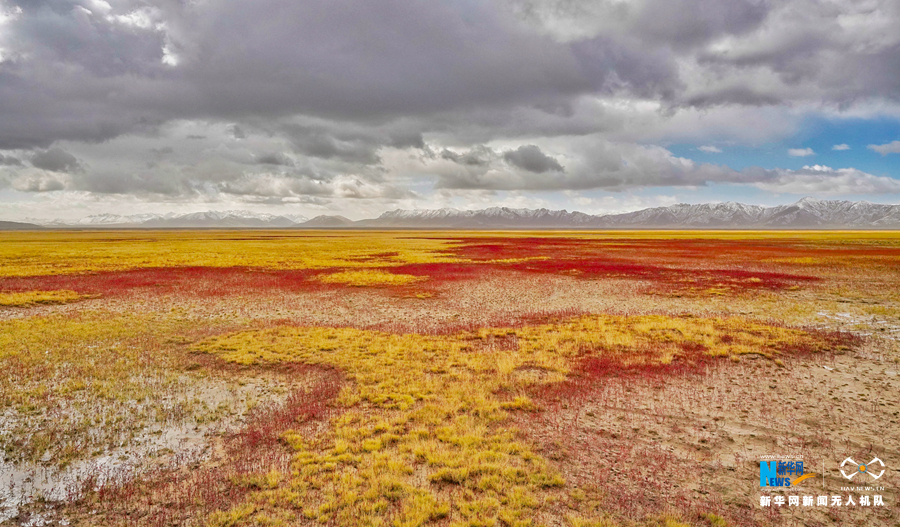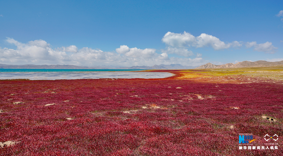 彩色的草原,讓冬格措納湖猶如童話(huà)世界。新華網(wǎng) 宋忠勇 攝