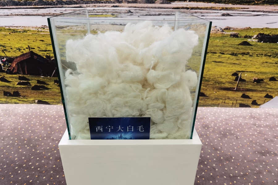 這是藏毯的主要原料—青海特有的“西寧大白毛”。新華網(wǎng)記者 潘子荻 攝