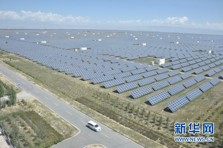 這是9月1日拍攝的位于青海省海南藏族自治州共和縣光伏產(chǎn)業(yè)園內(nèi)的光伏發(fā)電項(xiàng)目。新華社記者 陳凱 攝
