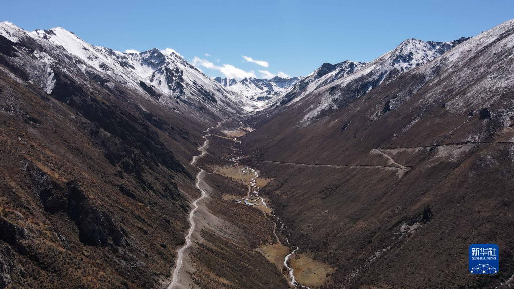 這是四川省甘孜藏族自治州巴塘縣境內(nèi)的通往藏巴拉雪山埡口的公路(10月23日攝,無(wú)人機(jī)照片)。新華社記者 胥冰潔 攝