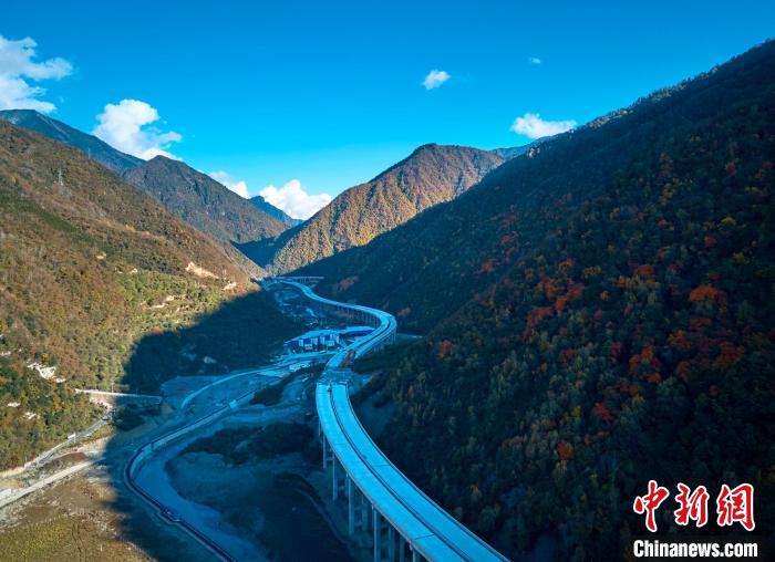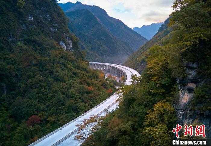 深秋時(shí)節(jié),四川省綿陽(yáng)市平武縣紅葉滿山,層林盡染,仿佛打翻的調(diào)色盤,正在建設(shè)的九綿高速宛若一條玉帶穿行其中,想象通車后駕車行駛在這條高速上,如遨游在五彩斑斕的彩林畫廊中一般,讓人心曠神怡。