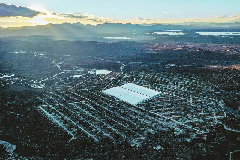 10月11日,從空中鳥(niǎo)瞰稻城海子山高海拔宇宙線觀測(cè)站。