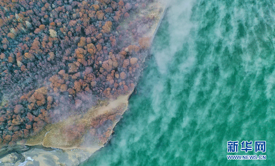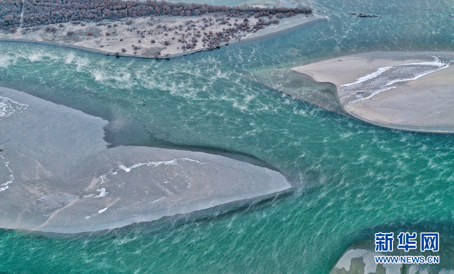 1月2日無人機拍攝的貴德縣千姿湖濕地公園。新華網(wǎng) 宋忠勇 攝