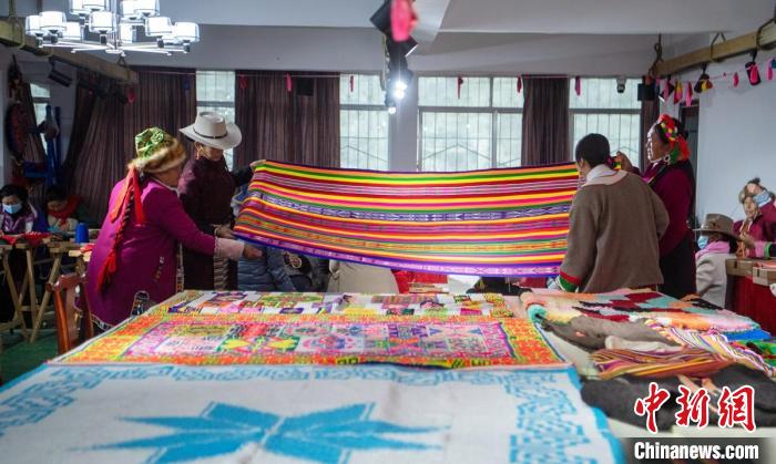 除了自然資源帶來(lái)的發(fā)展機(jī)會(huì),涉藏地區(qū)特有的手工藝也成為當(dāng)?shù)匕l(fā)展亮點(diǎn)。在四川甘孜州,說(shuō)起“九龍藏毯”無(wú)人不知。這種藏毯編織技藝以織法獨(dú)、毯面柔軟、經(jīng)久耐用以及明快艷麗的傳統(tǒng)圖案而聞名。