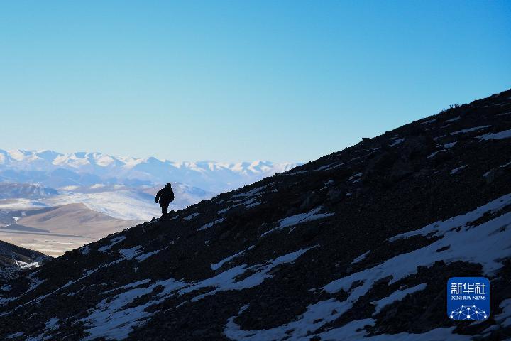 1月1日,登山愛好者攀登崗什卡雪峰(無人機照片)。新華社記者 張龍 攝