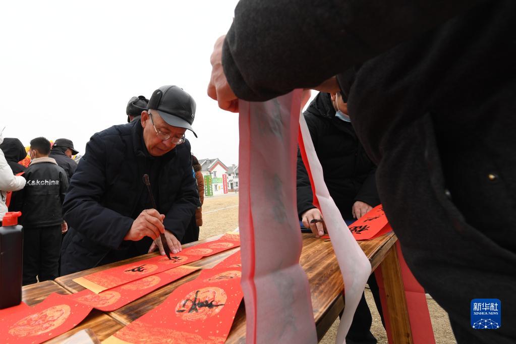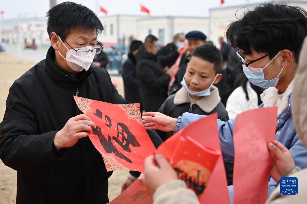 1月25日,在蘭州新區(qū)舟曲避險搬遷安置點,舟曲地質災害避險搬遷第一臨時黨支部組織書法家給搬遷群眾送春聯。新華社記者 范培珅 攝
