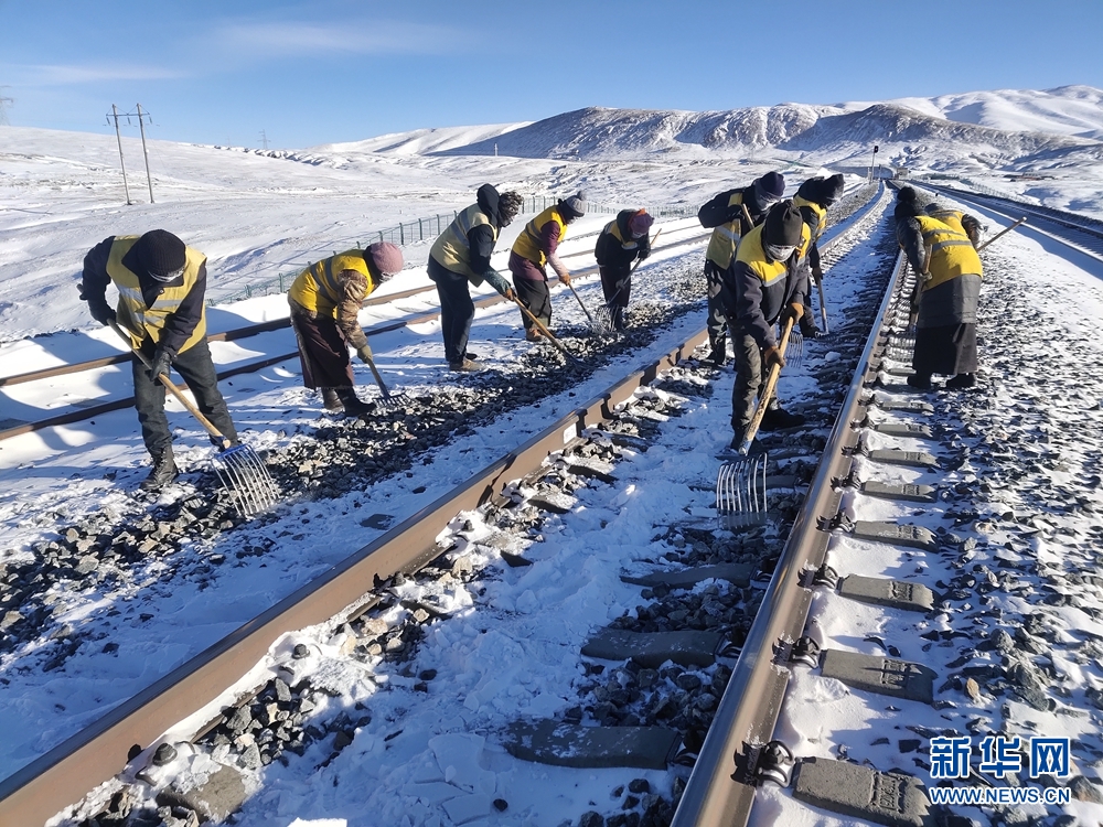 中國鐵路青藏集團公司格爾木工務段的職工在進行日常養(yǎng)護工作。