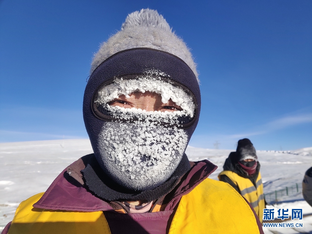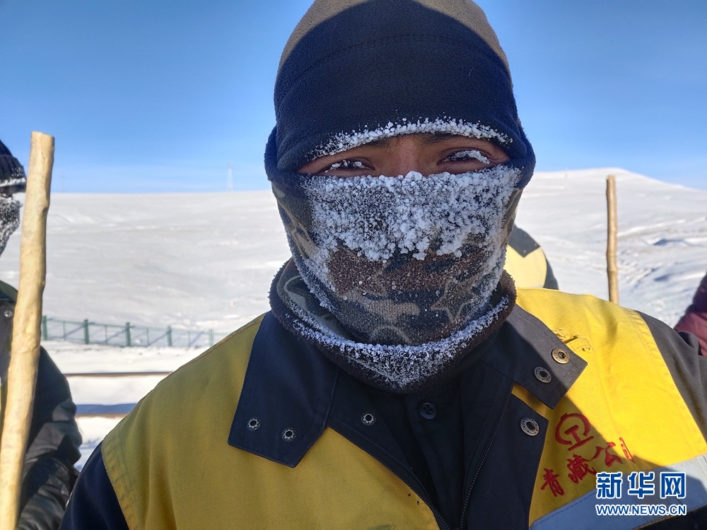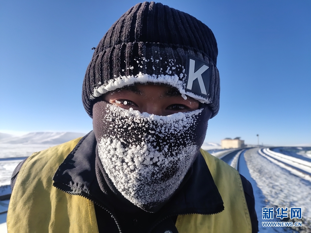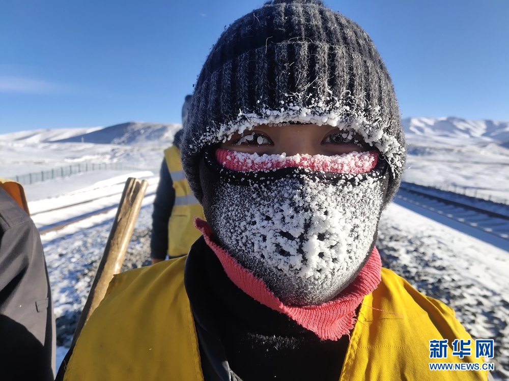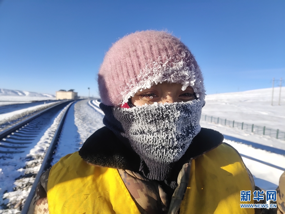 一天的工作結(jié)束后,她們的帽子、脖套上已布滿厚厚的冰霜。圖為中國鐵路青藏集團公司格爾木工務段職工才仁文毛。