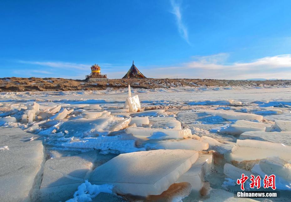 圖為青海湖邊堆積的冰層。趙海梅 攝