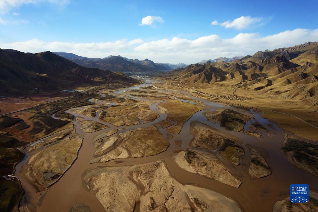 這是2022年3月20日在青海省玉樹藏族自治州囊謙縣境內(nèi)拍攝的瀾滄江上源扎曲河(無(wú)人機(jī)照片)。新華社記者 范培珅 攝