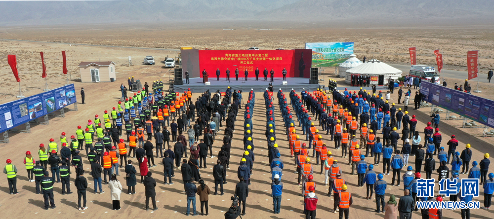 海西州2022年首批項(xiàng)目集中開(kāi)復(fù)工儀式格爾木市現(xiàn)場(chǎng)。新華網(wǎng) 馮春梓 攝