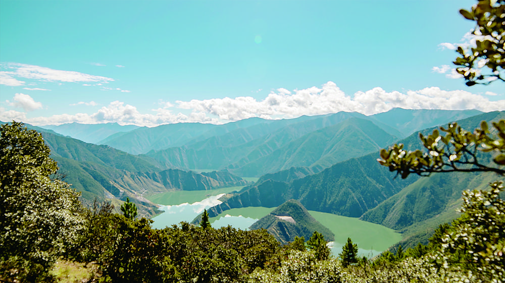 天龍湖是一個(gè)向上的世界,這世界被山水抬舉。記者從最佳視角——位于峽谷核心區(qū)普巴絨鄉(xiāng)比貢寺所在的山脊俯瞰,“九曲回腸”的一灣灣碧水在瘦削相對(duì)的青山之間,串連似珠玉,蘊(yùn)翠含黛、峻峭生姿。