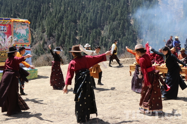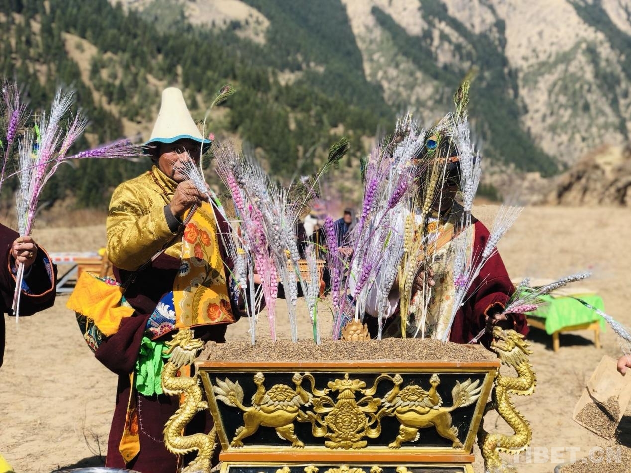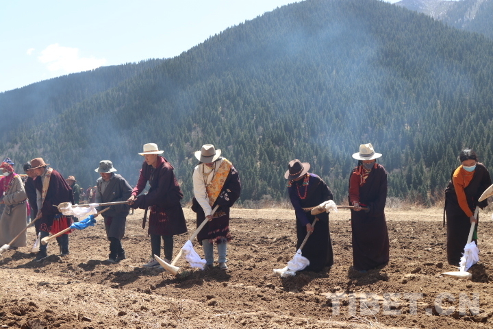 儀式上,綠油油的柏枝上火舌跳動(dòng),升起裊裊桑煙,大家載歌載舞,祈求風(fēng)調(diào)雨順、五谷豐登,歌聲、笑聲久久回蕩在田間地頭?!办猩F矶\”“開耕破土”,每一步儀式都莊嚴(yán)肅穆飽含著農(nóng)牧民對(duì)土地的虔誠(chéng)。當(dāng)開耕第一犁破土,藏了一冬的泥土被溫柔喚醒;當(dāng)?shù)谝涣7N子帶著人們的希望和祝福落入大地母親的懷抱,滿懷期望地祈求一年的風(fēng)調(diào)雨順、五谷豐登。