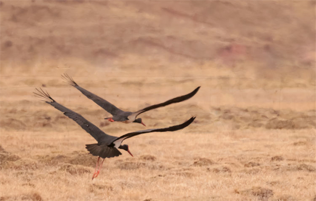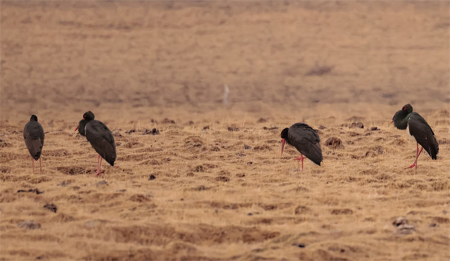 近日,有攝影師在祁連山國家公園亂海子濕地拍攝記錄到4只國家一級重點(diǎn)保護(hù)野生動(dòng)物——黑鸛,它們時(shí)而低頭覓食、時(shí)而展翅飛翔。黑鸛是一種體態(tài)優(yōu)美、體色鮮明、性情機(jī)警的大型涉禽,屬世界瀕危鳥類之一,在中國僅有1000多只,珍稀程度不亞于大熊貓,因此也有“鳥中大熊貓”之稱。
