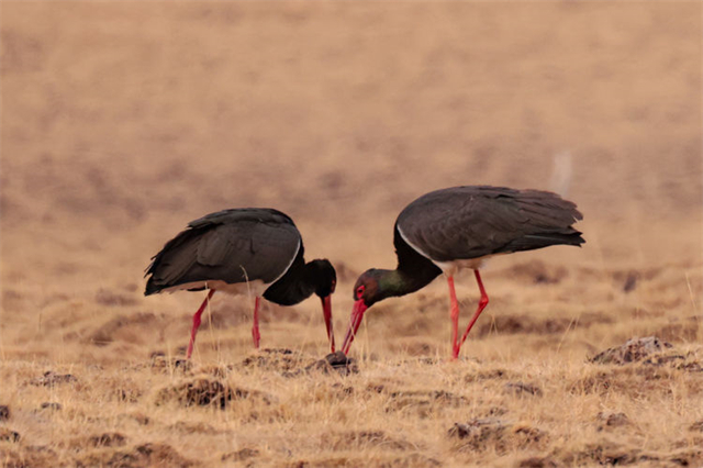 黑鸛現(xiàn)身祁連山國家公園。周元峰 攝
