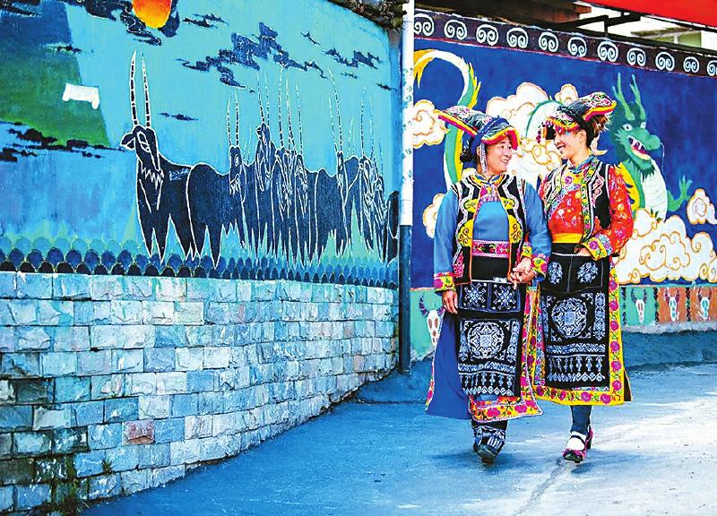 佳山村是羌族聚居村。2020年,佳山村獲評(píng)“四川十大最亮眼村居”。在省文聯(lián)的幫扶下,佳山村還實(shí)施了以“羌族圖騰”為主題的墻面彩繪,彰顯民族風(fēng)情,助力村民吃旅游飯。