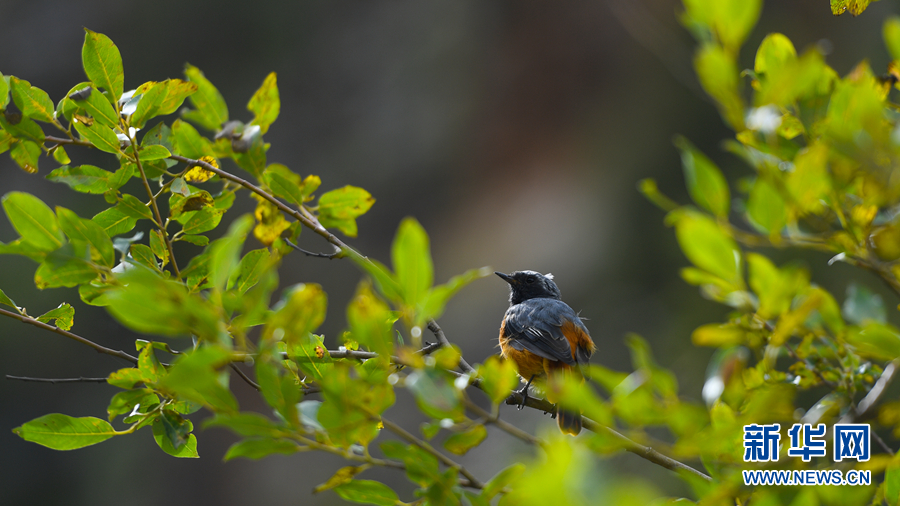 在青海省西寧市湟中區(qū)群加國家森林公園拍攝到的藍(lán)額紅尾鴝。