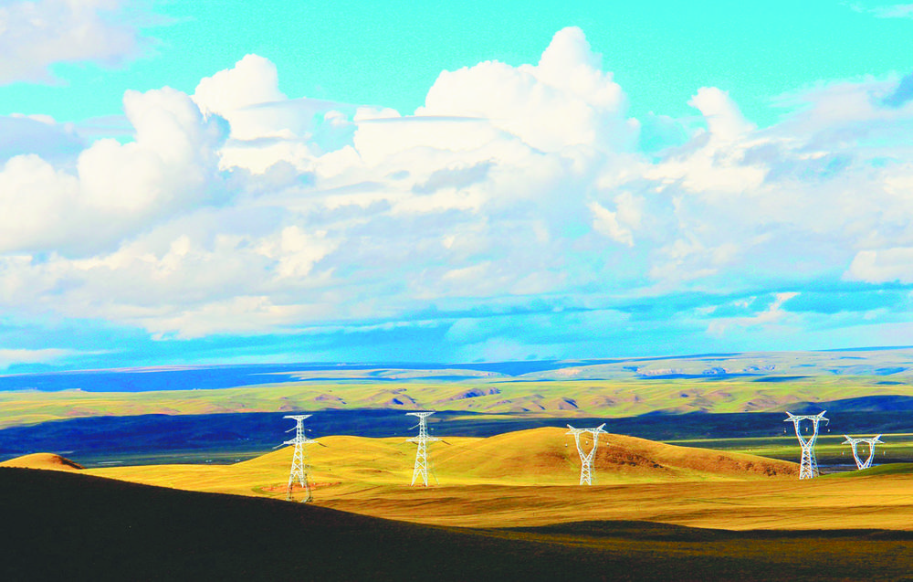 野外,銀線飛架在草原青山間,大電網(wǎng)縱橫雪域高原,將綠色電能源源不斷輸送到各行各業(yè),注入經(jīng)濟發(fā)展的能源動脈,也滿足人民生活的用電需求。