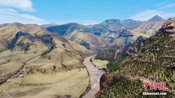 圖為4月29日,航拍三江源國家公園瀾滄江源園區(qū)風(fēng)光。(無人機照片) 中新社記者 李江寧 攝
