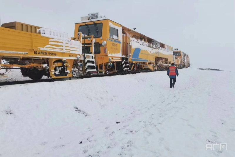 昆侖山上,氣溫驟降,多處施工現(xiàn)場(chǎng)被大雪覆蓋,一片白雪皚皚。為確保施工順利進(jìn)行,近日,西寧工務(wù)機(jī)械段維修三車間的職工們開(kāi)啟了對(duì)青藏鐵路格拉線望昆——昆侖山區(qū)間大機(jī)搗固施工作業(yè)。西寧工務(wù)機(jī)械段維修三車間主任王海峰在施工作業(yè)前,帶領(lǐng)車間職工清理積雪,同時(shí)對(duì)低溫狀態(tài)易發(fā)生故障的作業(yè)裝置進(jìn)行針對(duì)性保養(yǎng)。“注意腳下積雪濕滑,扶穩(wěn)抓牢,保證自身人身安全?!避囬g副主任張小波提醒說(shuō)。