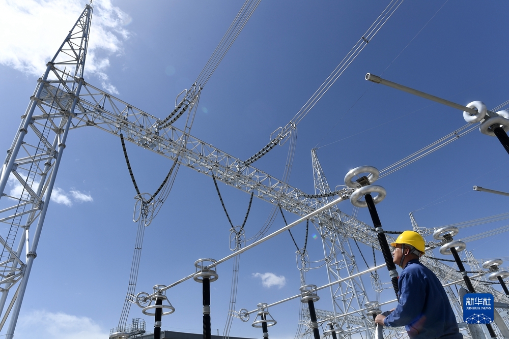 這是2021年9月1日拍攝的位于青海省海南藏族自治州共和縣的青豫特高壓輸電線路。新華社記者 解統(tǒng)強 攝
