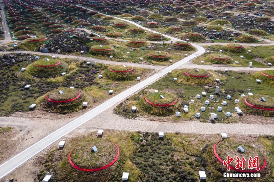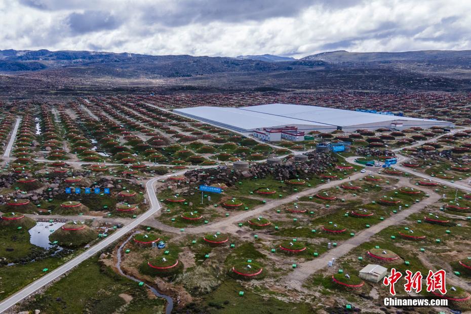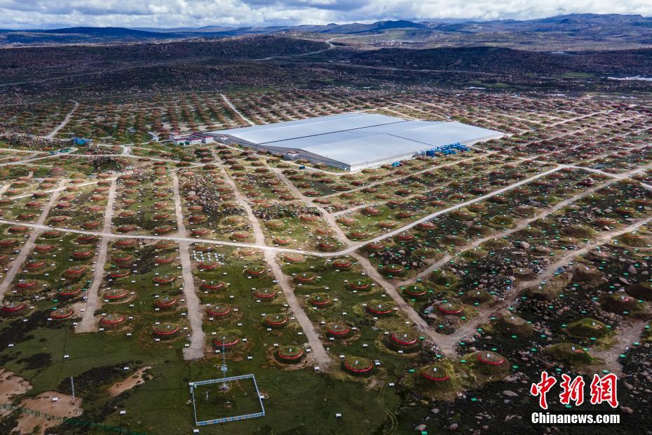 6月28日,四川稻城,稻城高海拔宇宙線觀測站均勻分布的探測器。海拔4410米的四川省甘孜州稻城縣海子山,5216個(gè)電磁粒子探測器和1188個(gè)繆子探測器,以及占地78000平方米的水切倫科夫探測器有序分布在1.36平方公里范圍,十分壯觀,這是中國建設(shè)的第三代高山宇宙線實(shí)驗(yàn)站。 中新社記者 劉忠俊 攝