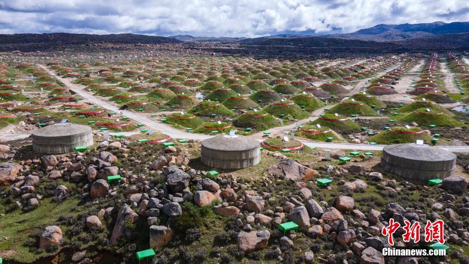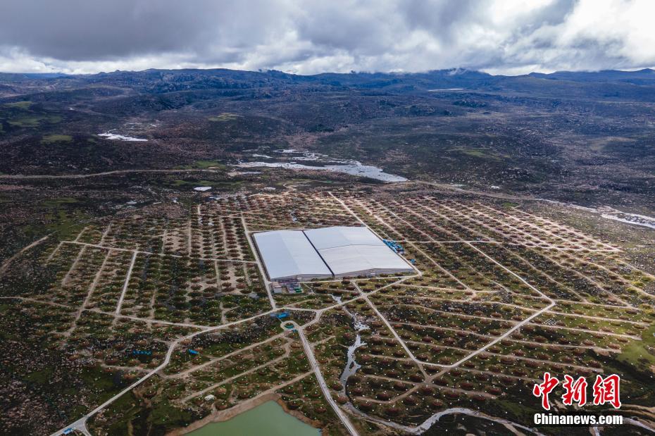 6月28日,四川稻城,觀測站中間房屋結(jié)構(gòu)為水切倫科夫探測器。海拔4410米的四川省甘孜州稻城縣海子山,5216個(gè)電磁粒子探測器和1188個(gè)繆子探測器,以及占地78000平方米的水切倫科夫探測器有序分布在1.36平方公里范圍,十分壯觀,這是中國建設(shè)的第三代高山宇宙線實(shí)驗(yàn)站。中新社記者 劉忠俊