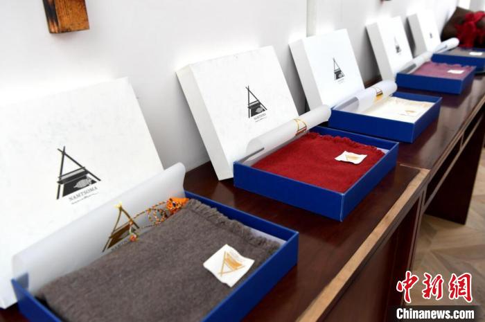 山鷹和團(tuán)隊(duì)編制的精美圍脖和披肩。伍排勇 攝