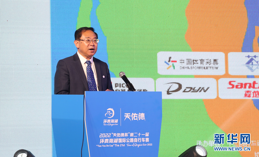 2022第二十一屆環(huán)青海湖國際公路自行車賽新聞發(fā)布會現(xiàn)場。新華網(wǎng) 卡婭梅朵 攝