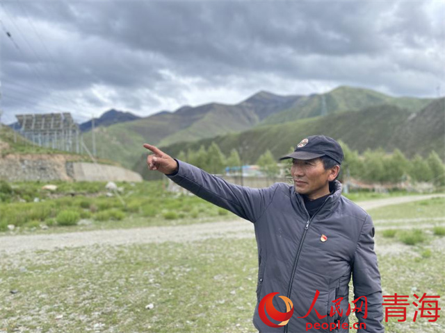 索昂青梅指向挖蟲草的草山。人民網(wǎng) 顧斐菲 攝