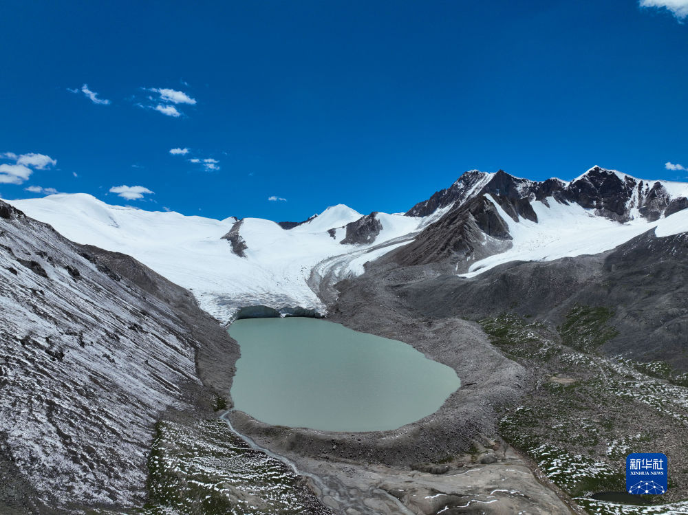 這是7月21日在長(zhǎng)江源地區(qū)拍攝的冰川與湖泊(無(wú)人機(jī)照片)。新華社記者 張龍 攝