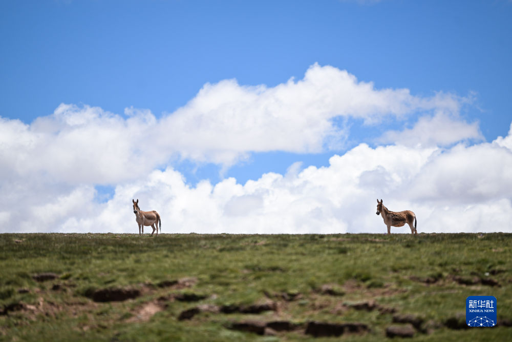 這是7月19日在長(zhǎng)江源地區(qū)拍攝的藏野驢。新華社記者 張龍 攝