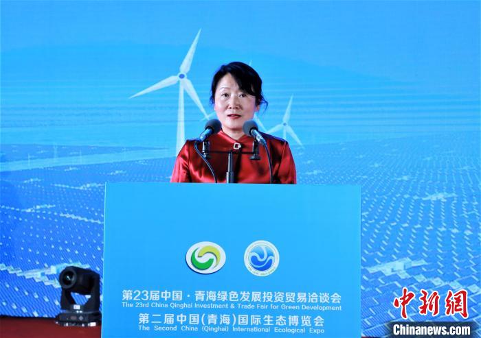 圖為海南州政府副州長(zhǎng)獨(dú)金萍進(jìn)行投資環(huán)境說(shuō)明推介。 顏軍 攝