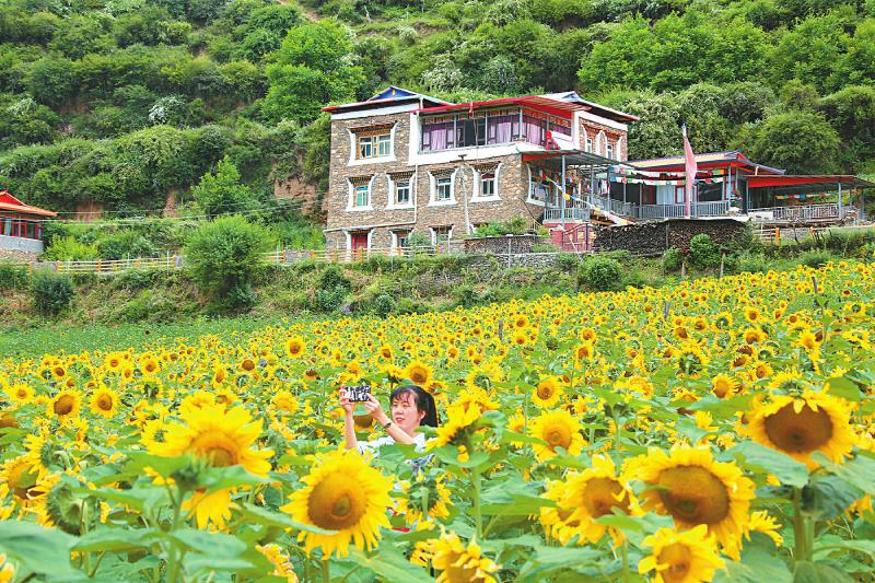 “現(xiàn)在是向日葵的盛花期,今天又是周末,來(lái)的游客比較多。”洛威村黨支部書(shū)記澤郎東周說(shuō),因?yàn)榭少p花、可納涼,7月前來(lái)洛威村休閑娛樂(lè)的游客已經(jīng)超2萬(wàn)人次,村內(nèi)的“云壑樂(lè)園”農(nóng)家樂(lè)開(kāi)業(yè)10來(lái)天便收入約20萬(wàn)元。