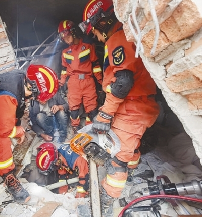 9月5日17時16分,海螺溝景區(qū)消防救援大隊對位于磨西鎮(zhèn)老街一酒店二樓的被困群眾展開營救。消防救援人員破拆加固建筑廢墟、安全評估現(xiàn)場環(huán)境,并對廢墟中的障礙物進行清理,經(jīng)過緊張救援,被困群眾被成功救出。王明峰 劉國謙 攝影報道