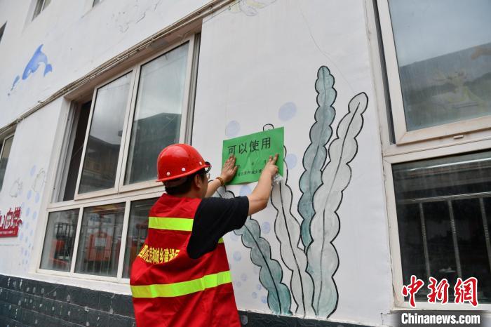 房屋應(yīng)急評估人員評估房屋狀況。張浪 攝