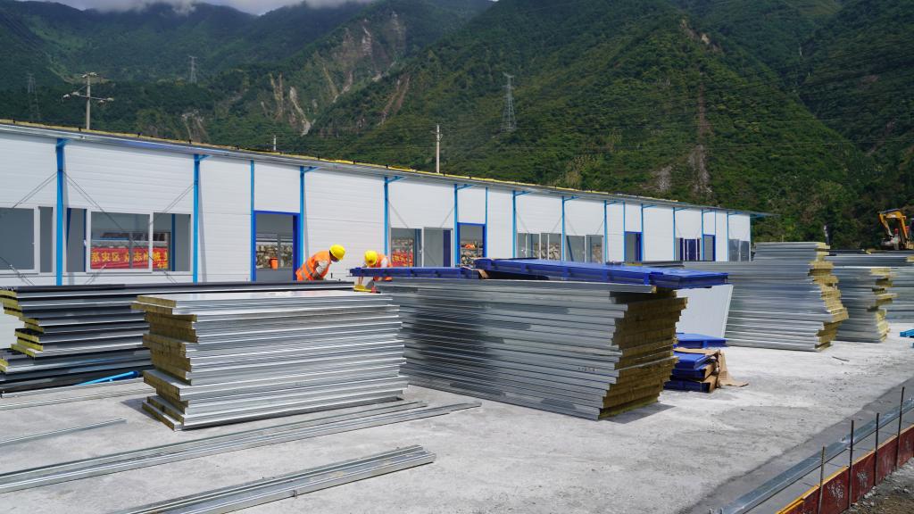 在得妥鎮(zhèn)天池山村繁榮集中過渡安置點工地里,200多名施工人員正在抓緊進行安置點的板房安裝?!澳壳拔覀円淹瓿?20套板房安裝,預計受災群眾可于10月初入住?!笨偝邪鼏挝蝗A西集團四川省建筑機械化工程有限公司項目負責人王偉介紹,該安置點還將配備公共衛(wèi)生間、公共浴室、廚房、健身器材等設施,為受災群眾在過渡安置期間創(chuàng)造安全便利的生活條件。