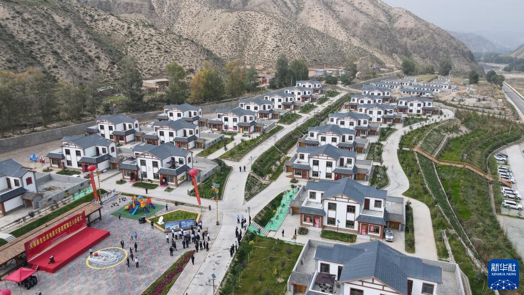 9月15日拍攝的甘肅省武威市祁連鎮(zhèn)祁連村下河安置點(無人機照片)。新華社記者 張智敏 攝