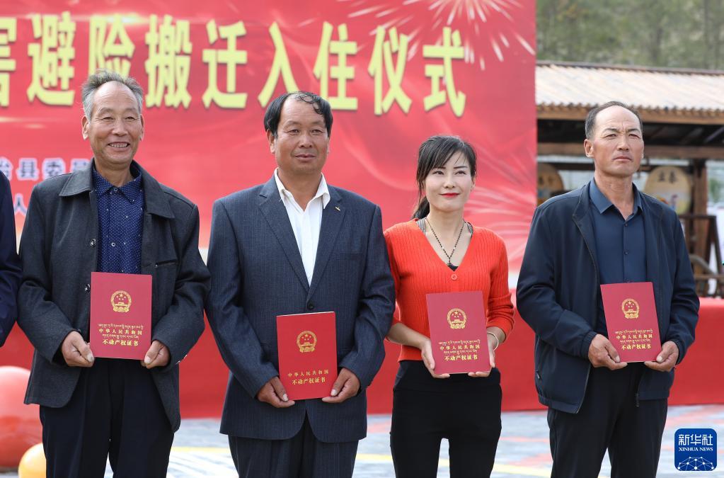9月15日,在甘肅省武威市天祝藏族自治縣生態(tài)及地質(zhì)災(zāi)害避險搬遷入住儀式上,祁連鎮(zhèn)116戶群眾拿到不動產(chǎn)權(quán)證書,入住新房。作為生態(tài)脆弱地區(qū),天??h通過生態(tài)及地質(zhì)災(zāi)害避險搬遷工作,嘗試解決地質(zhì)災(zāi)害威脅和發(fā)展受限問題。