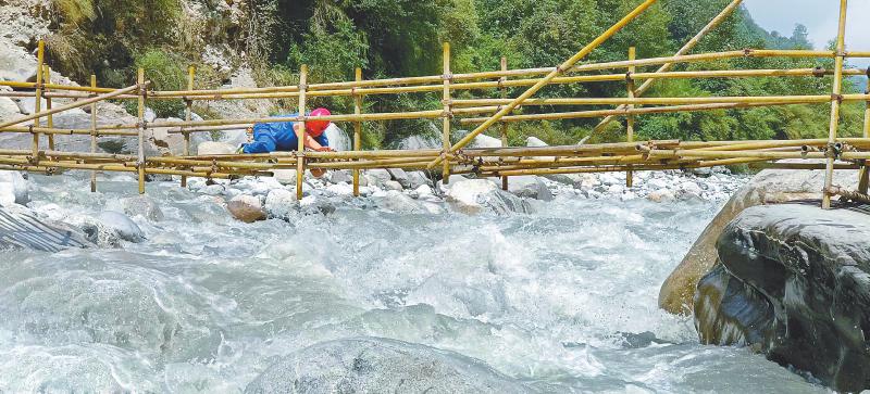 四川省青年應(yīng)急志愿服務(wù)總隊雷波大隊隊員們搭建鋼架橋。本版圖片均由受訪者提供