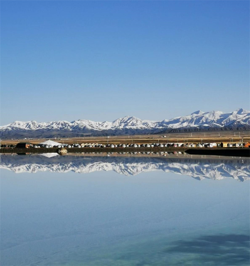 位于青海省海西蒙古族藏族自治州烏蘭縣的茶卡鹽湖鹽層開始結(jié)晶,湖水逐漸純凈,平靜的湖水如同天然鏡面,倒映著湛藍(lán)天空與皚皚雪山,呈現(xiàn)出一幅別樣高原秋日美景。
