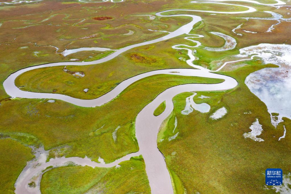 9月17日拍攝的阿萬倉濕地風(fēng)光(無人機照片)。新華社記者 郎兵兵 攝