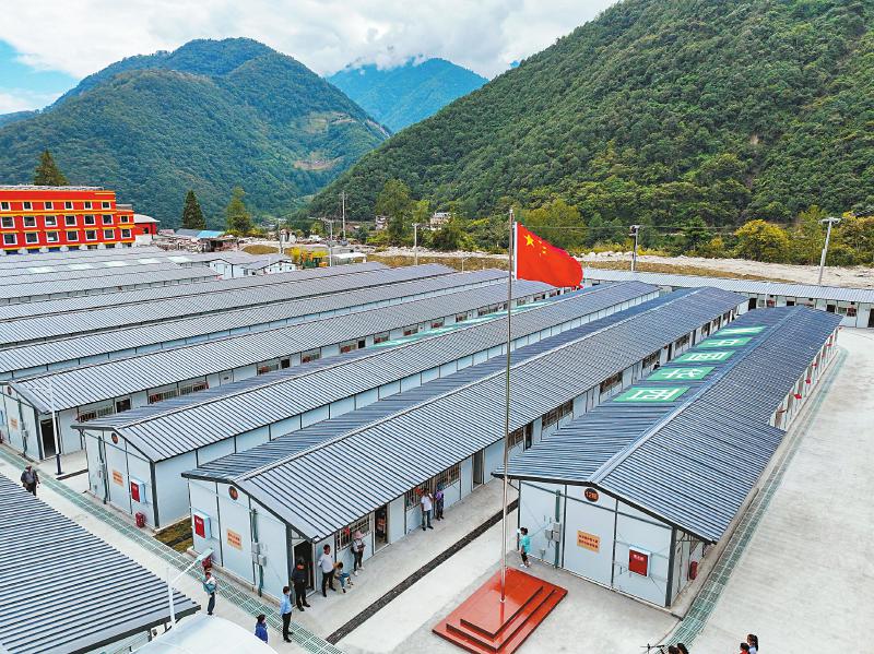 當(dāng)日,瀘定地震集中過渡安置房交付使用,430戶受災(zāi)群眾告別臨時帳篷,陸續(xù)搬進(jìn)位于磨西鎮(zhèn)、得妥鎮(zhèn)的過渡板房安置點。