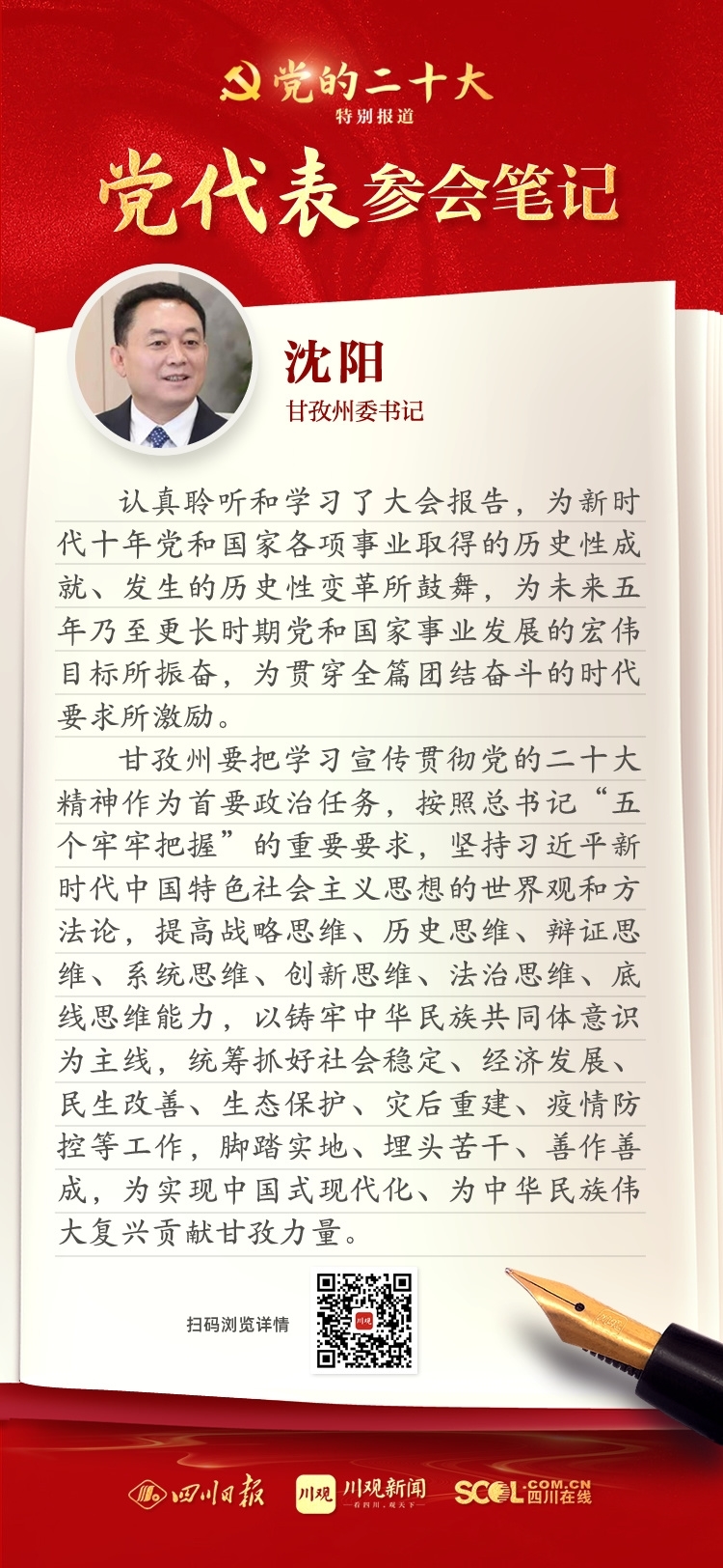 出席盛會,來自四川的黨代表深感使命光榮、責任重大,大家認真履職,結(jié)合報告談認識、談體會、談打算。川觀新聞特此推出“黨代表參會筆記”欄目,分享黨代表們的參會心得,敬請垂注。