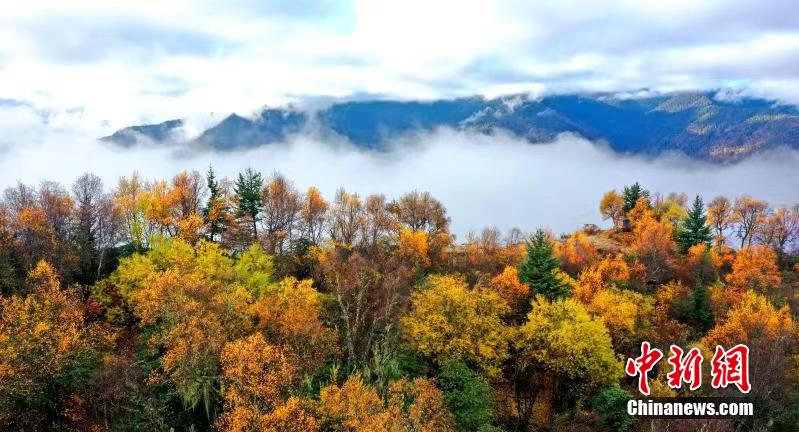 深秋時(shí)節(jié),四川馬爾康市馬爾康鎮(zhèn)阿底村賽馬山迎來(lái)彩林觀(guān)賞的最佳季節(jié)。放眼望去,海拔3500米的賽馬山上彩林連綿延伸至茫茫云海,遠(yuǎn)方雪山四面環(huán)繞,宛如仙境一般。阿壩州文體旅游局供圖