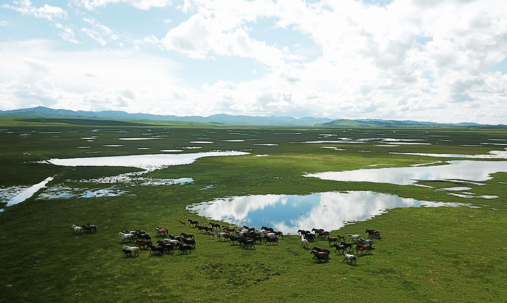 深秋,從空中俯瞰平均海拔3500多米的瑪曲濕地,大大小小的湖泊如珍珠般灑落在草原上,上萬只候鳥在這里安心度過繁殖季,準(zhǔn)備飛往南方過冬。